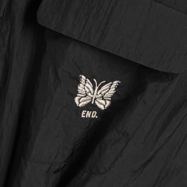 В сотрудничестве с Needles END. представляет тщательно подобранную коллекцию, в которой особое внимание уделяется нейлону. В линейку входит эта спортивная куртка - изысканная интерпретация ретро-спортивного силуэта. Функциональная и в то же время изысканная, она оснащена изящной двойной молнией, украшенной культовой бабочкой Needles. Этот фирменный мотив также присутствует на одном из двух передних нагрудных карманов, дополненных логотипом END., что создает характерный кобрендинговый эффект. Платиновая вышивка добавляет памятный штрих - отсылка к 20-летнему наследию END.
