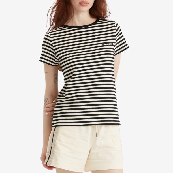 Moncler продолжает классику, представляя эту полосатую футболку с короткими рукавами. Изготовленная из мягкого хлопка, она станет отличным повседневным аксессуаром и вневременным трендом. Строгие полоски дополняются культовой нашивкой с логотипом на груди - сдержанной, но безошибочно узнаваемой.