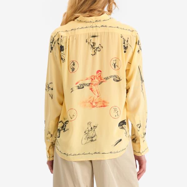 Эта рубашка Bode, богатая историей и мастерством исполнения, - яркий пример этого. Свободный крой, сотканный из мягчайшего шелка, обеспечивает свободную посадку. Графический принт по всей поверхности вдохновлен различными видами спорта.