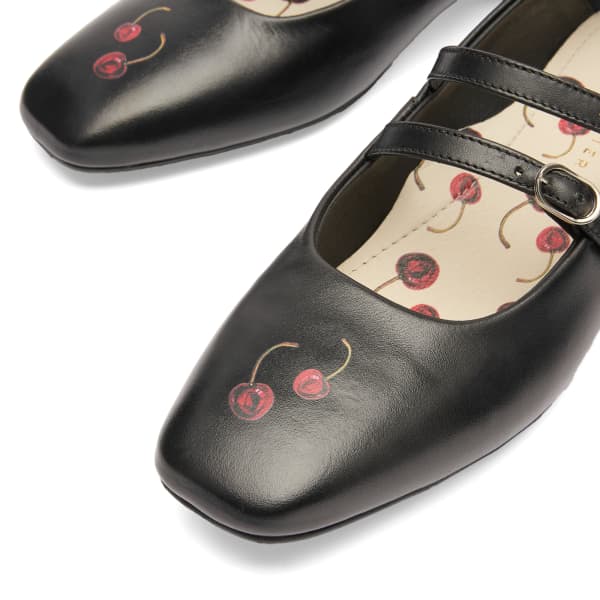 Туфли «Мэри Джейн», изначально названные в честь персонажа комикса Бастера Брауна в начале 1900-х годов, доказали свою непреходящую привлекательность на протяжении поколений. Duke + Dexter привносит современность в классику, сочетая цифровую печать вишен с ручной отделкой, создавая одновременно свежий и узнаваемый образ.