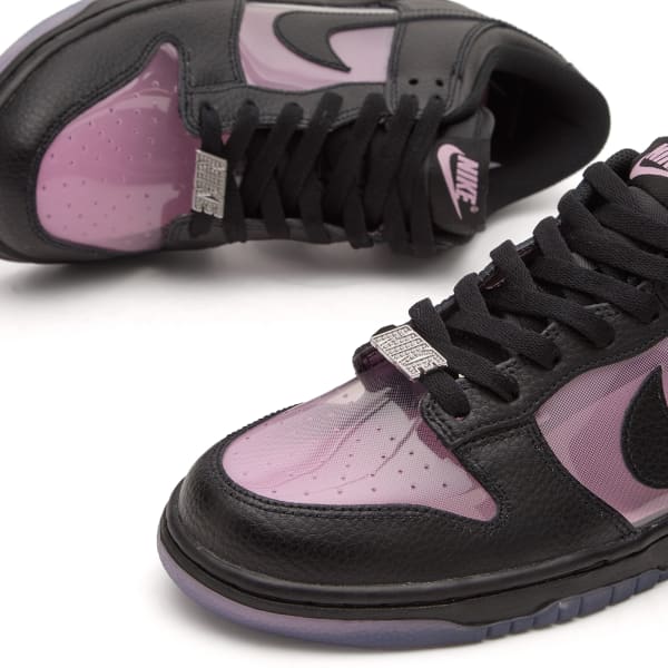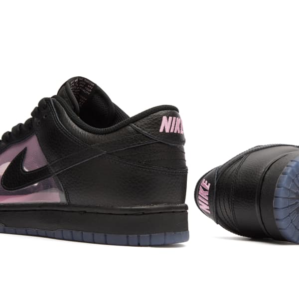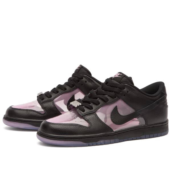 Подарок, который не перестает радовать - с момента выхода линейки Nike Dunk в 80-х годах сникерхеды не перестают расширять свои возможности. Эта премиальная версия сочетает мятую черную кожу с розовой подошвой и прозрачными вставками на перфорированном носке и боковинах. Розовый оттенок распространяется и на полупрозрачную подошву, а дюбре со стразами завершает эту свежую, невидимую интерпретацию классики.