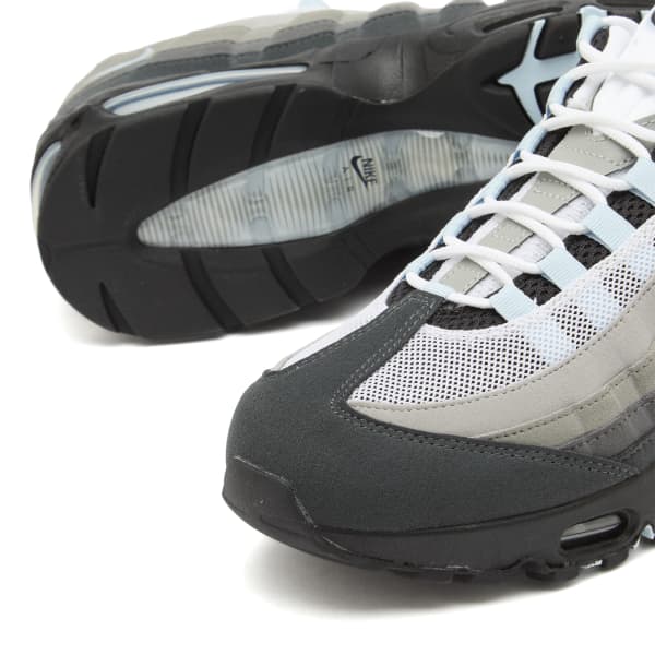 Для тех, кто в курсе: расцветка Nike Air Max 95 OG «Blue Tint» вдохновлена нежными синими оттенками расцветки «Aluminium» 2019 года. В сочетании с неизменно популярным большим пузырем на пятке, плавный переход от белого язычка и сетчатых панелей к черной подошве создает элегантный, современный контраст, одновременно свежий и ностальгический.