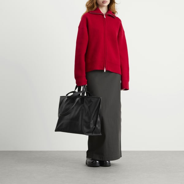 KASSL Editions переосмысливает повседневные аксессуары, уделяя особое внимание функциональности, форме и долговечности. Эта сумка-тоут изготовлена из прочной кожи с гладкой текстурой. Она оснащена двумя ремнями для ношения в руке или на плече, а также внутренним накладным карманом для необходимых вещей. Благодаря лаконичному силуэту и практичным деталям, она создана для повседневного использования и создает ощущение роскоши.