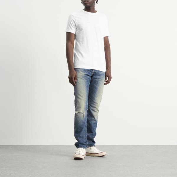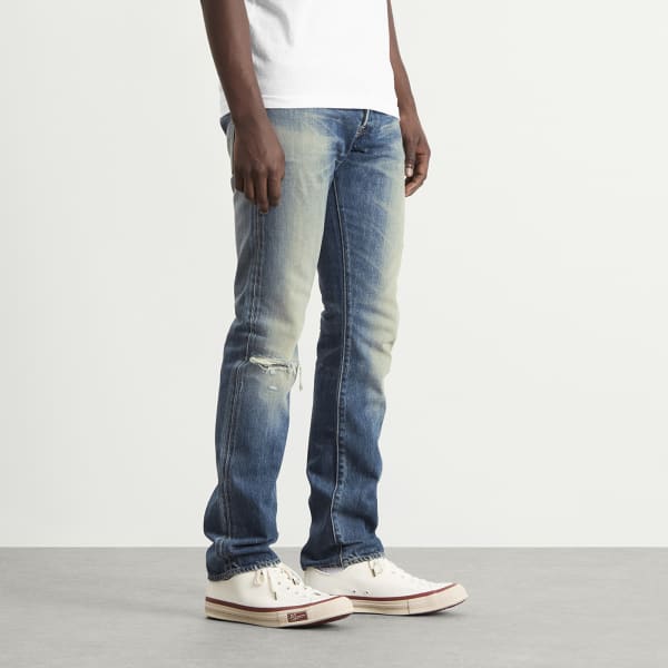 Эти джинсы Visvim с потертой отделкой изготовлены в Японии из 14-унциевого денима, изготовленного на заказ. Слегка зауженный крой и искусно потертые штанины.