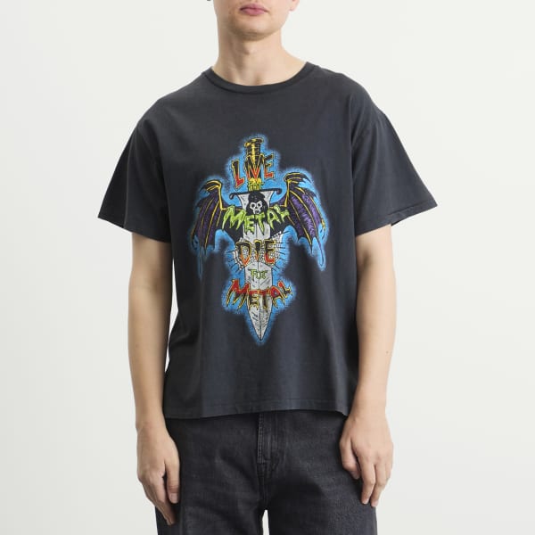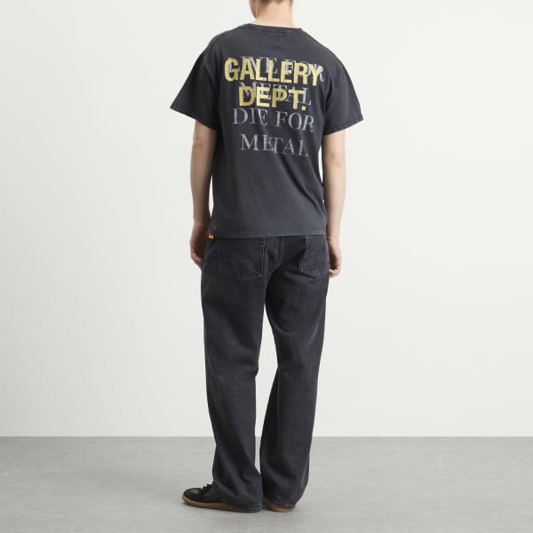 Gallery Dept, лос-анджелесский лейбл, известный своей грубой графикой и винтажными силуэтами, воплощает энергию хэви-метала в этой футболке. Свободный крой в стиле 90-х годов дополнен спереди потертой надписью «Live Metal Die Metal» - выцветшей и потертой. На спине жирная надпись «Live For Metal Die For Metal» дополнена логотипом GD ENGLISH с золотыми блестками, что добавляет контраста и фактуры. Эта графичная модель отражает бунтарский дух бренда.