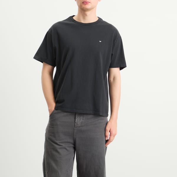 Gallery Dept, лос-анджелесский бренд, известный сочетанием искусства, моды и уличной моды, предлагает футболку с микрологотипом. Футболка свободного кроя украшена едва заметным логотипом GD ENGLISH спереди. Это своего рода отсылка к графическому языку бренда, где главное внимание уделяется крою и ткани.