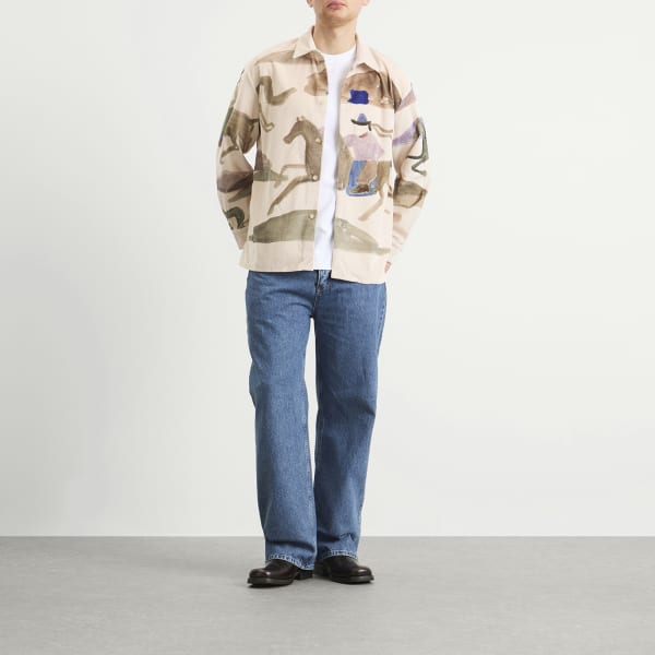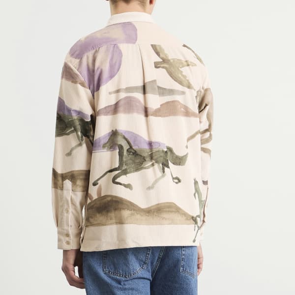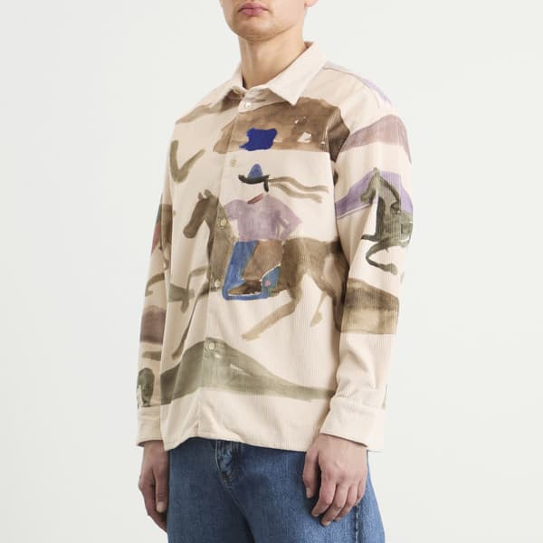 Коллекция AW25 Altai Mirage от A Kind of Guise вдохновлена безграничной тишиной монгольского пейзажа, где горизонты простираются бесконечно, а жизнь течет в гармонии с природой. Рубашка Derbin передает дух страны через изображение всадника в движении, нарисованное берлинским и венским художником Джонатаном Никлаусом и воплощенное на мягком итальянском хлопковом вельвете.