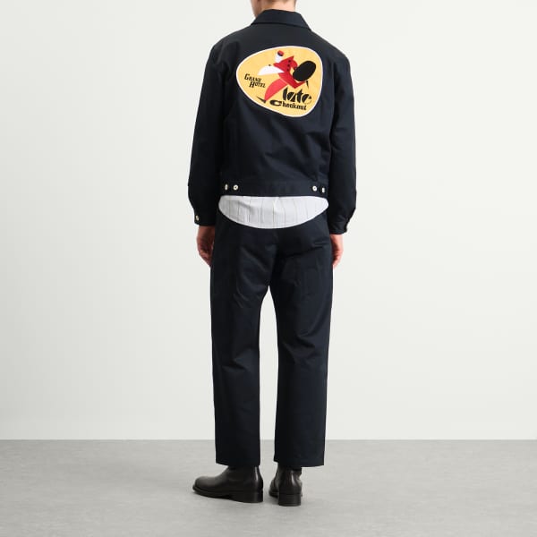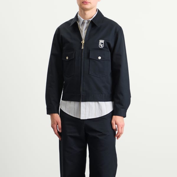 Куртка Late Checkout воплощает растущие тенденции в дизайне рабочей одежды и подчеркивает утилитарный стиль. Изготовленная из прочного хлопка, она отличается структурированным силуэтом с четкими линиями и минимальным количеством деталей. Ярким элементом является яркая графика Late Checkout на спине, которая добавляет классическому изделию неповторимую индивидуальность и игривый штрих.