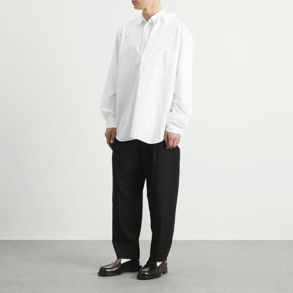 Рубашка с запахом - это Comme des Garçons Homme Plus в ее самой экспериментальной, бросившей вызов традиционной конструкции с многослойными панелями и деталями с запахом. Отсылка к антимодным корням бренда, эта модель предлагает множество интерпретаций, что соответствует духу Кавакубо - индивидуальности и инноваций.