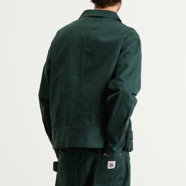 Bode, известный своим мастерством, вдохновленным винтажным стилем, представляет куртку Knolly Brook с боковыми застежками. Эта сезонная модель из плотного хлопкового твила насыщенного лесного зеленого цвета дополнена пуговицами на боковых застежках и фирменными бирками «Knolly Brook: A Bode Project». Отдавая дань уважения классической рабочей одежде, она сочетает в себе эстетику прошлого и современный крой.