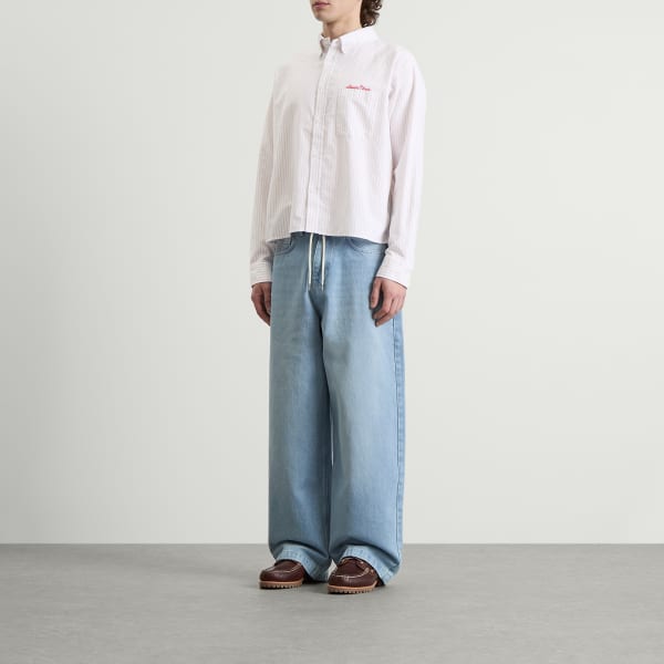 Когда речь заходит о современной мужской одежде, лондонский бренд about:blank просто в ударе. Эта рубашка-оксфорд в полоску, скроенная по фигуре и имеющая свободный крой, - классика стиля casual. Украшенная вышитым красным логотипом над нагрудным карманом, она выглядит очень лаконично и стильно.