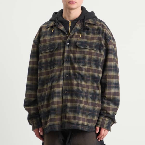 Бросая вызов условностям, эта модель Willy Chavarria сочетает в себе верхнюю рубашку и толстовку с капюшоном на молнии. Рубашка из мягкого, но прочного хлопка с клетчатым узором по всей поверхности добавит вашему образу фирменную уличную эстетику. Регулируемый капюшон под ней повышает практичность, а золотистые детали добавляют изысканный штрих.