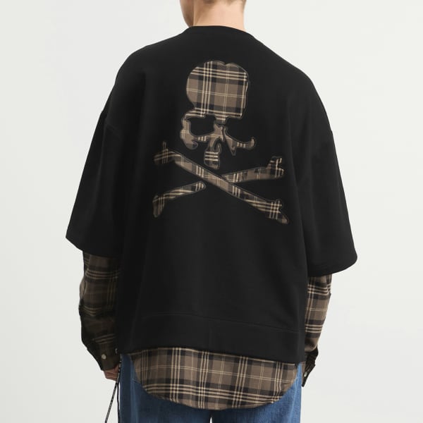 Эта толстовка MASTERMIND WORLD, разрушающая стилистические коды готической эстетикой, отличается многослойным кроем. Сверху - толстовка с короткими рукавами из фирменного гибридного хлопка Suvin Gold × Giza, а под ней - клетчатая рубашка из высококачественного хлопкового текстиля. На обороте - фирменный череп в том же цвете, что и на нижней рубашке.