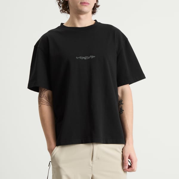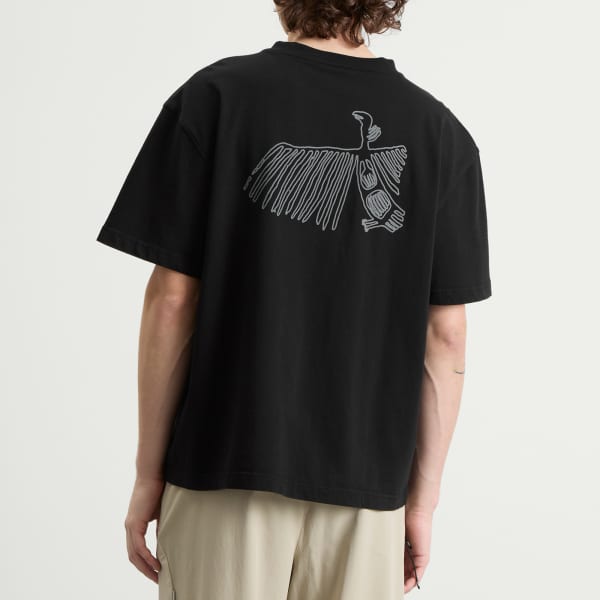Вдохновленный северной природой, бренд KA_YO_Prototype создает прочную и экологичную одежду для активного отдыха. Эта свободная футболка с принтом из коллекции AW25 «Петроглифы» украшена графикой, вдохновленной древними резными фигурами, символическими формами, переосмысленными в мягкой, естественной гамме. Футболка создана для походов и повседневной носки, сочетая в себе историческое наследие и современный дизайн.