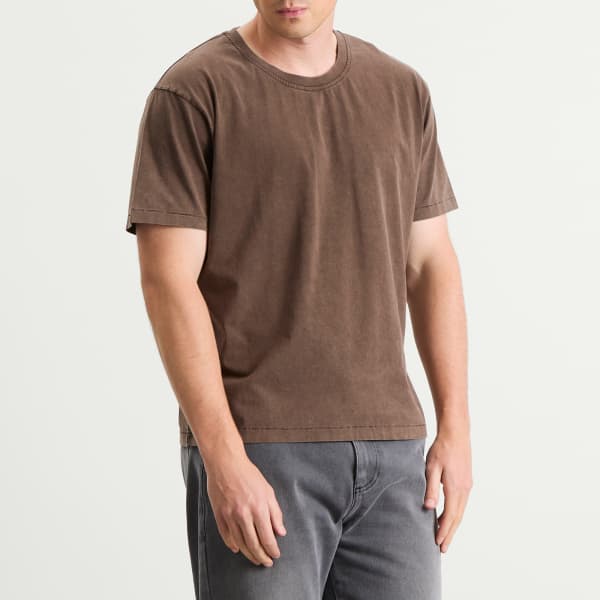 Компания mfpen известна своей продуманной интерпретацией классической мужской одежды, сочетающей скандинавский минимализм с непринужденным стилем. Новая футболка отражает этот подход благодаря свободному, слегка укороченному силуэту, сшитому из органического хлопкового трикотажа медно-коричневого цвета, окрашенного в готовом виде. Сделано в Португалии. Это изысканная базовая модель, сочетающая в себе свободные пропорции, насыщенную текстуру и глубину оттенков.