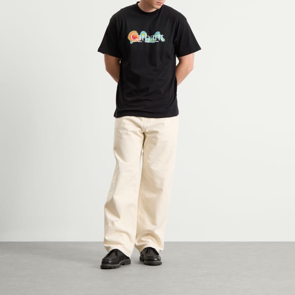 Эта футболка Carhartt WIP, синоним прочной рабочей одежды с 1889 года, сшита из органического хлопкового трикотажа средней плотности. Свободный крой, которым славится этот бренд, и графика на груди побуждают к экспериментам.