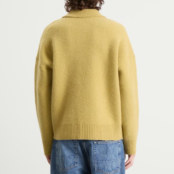 Бренд AMI Paris, основанный Александром Маттиусси в 2011 году, делает ставку на лаконичный дизайн, качественные материалы и парижский стиль. Поло из альпаки - элегантное и приятное на ощупь, сшитое с использованием перекрестного шва, обеспечивающего структуру и мягкость. Тональная интарсия Ami de Coeur добавляет неповторимый фирменный штрих, а роговые пуговицы с гравировкой «ami» и кожаная этикетка завершают детали. Изысканная, непринужденная и сдержанная роскошь - вот что отличает эту модель.