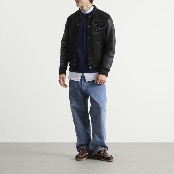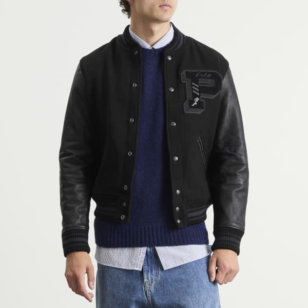Polo Ralph Lauren - воплощение американского стиля, известного сочетанием классического дизайна и современных тенденций. Эта университетская куртка выполнена из смесовой шерсти, имеет контрастные кожаные рукава и классические детали в стиле «леттерман», переосмысленные в элегантной черной гамме. Это изысканная интерпретация студенческого стиля, созданная для повседневной носки.