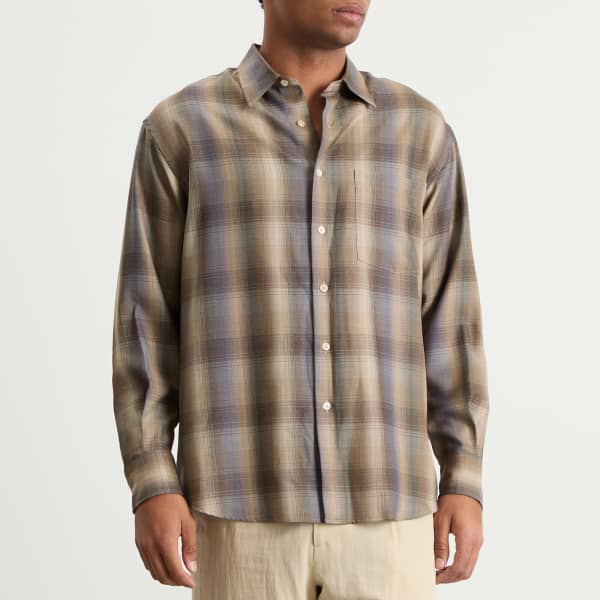 Очень легкая шерстяная рубашка в клетку Auralee, Brown Blue Check