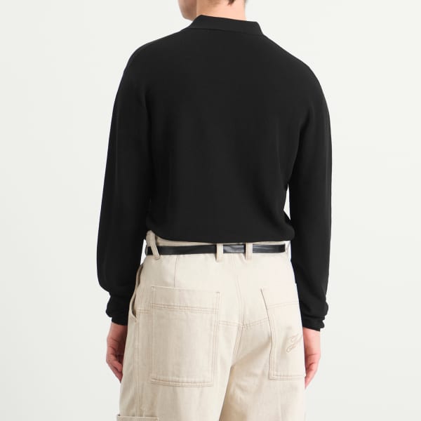 Это поло Jacquemus, созданное с игривым и художественным подходом, сразу переходит к делу. Оно связано из мягкой хлопковой смеси и рассчитано на длинные рукава. Нагрудный карман практичен.
