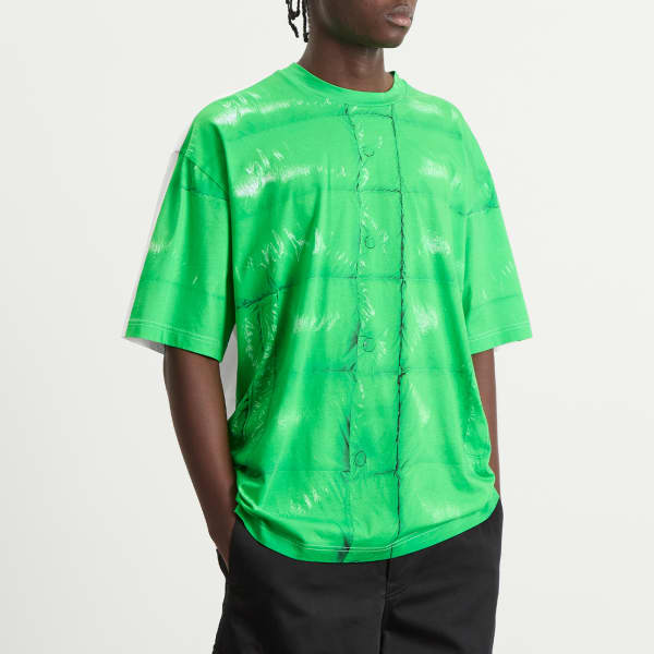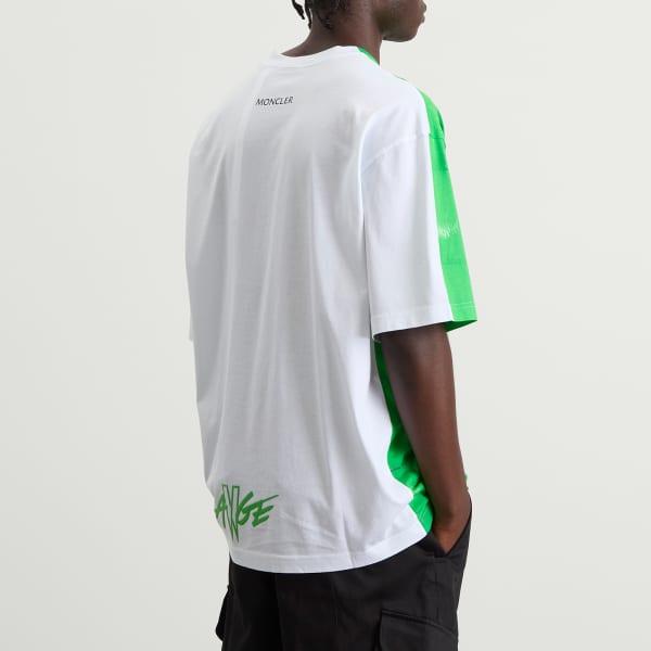 Moncler Genius объединяется с рэпером и признанным модником A$AP Rocky для создания энергичной капсульной коллекции. Переворачивая сюжет, они превращают фирменную стеганую ткань бренда в яркий цифровой принт. Эта футболка из мягкого хлопка, обеспечивающего комфорт в течение всего дня, добавляет графическую нотку в мото-стилистику коллаборации.