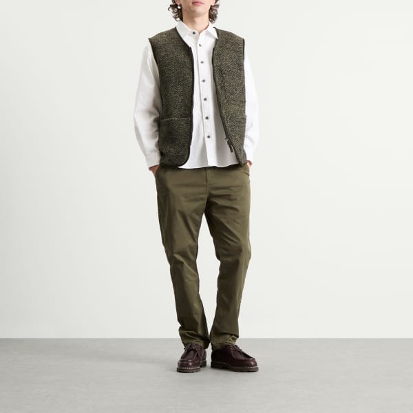 Kestin, эдинбургский бренд, известный современной рабочей одеждой и шотландским наследием, представляет жилет Bute. Эта модель выполнена из мягкой шерстяной ткани с нежным узором «елочка» цвета мох, обеспечивающей тепло и текстуру с ненавязчивой глубиной. Функциональные детали включают два больших передних кармана: один с прорезью для инструментов, другой с закрепкой для структурирования, накладной нагрудный карман и двустороннюю молнию. Этот практичный слой с четким краем идеально подходит для демисезонного ношения.