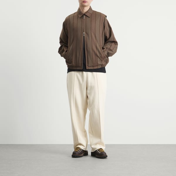 Merely Made, сеульский бренд, известный продуманным дизайном и приятными на ощупь японскими тканями, представляет изысканную модель в этой куртке с бахромой. Сдержанный клетчатый рисунок и струящаяся драпировка создают идеальный баланс между ретро-очарованием и современным стилем. Модель дополнена строгим воротником и присборенным подолом, что является воплощением непринужденного и изысканного стиля бренда.