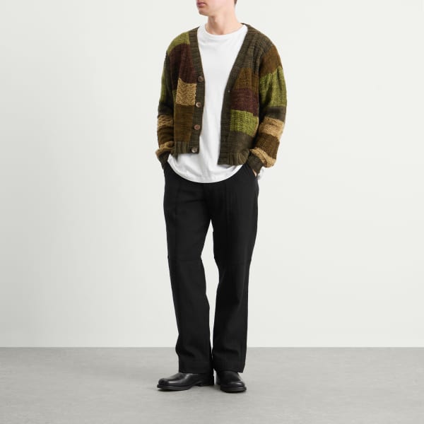 Основной принцип Kartik Research - возвращение человечности в одежду. Этот кардиган в стиле пэчворк связан вручную из 100% шерсти и украшен перламутровыми пуговицами. Этот кардиган, созданный женским коллективом мастеров из Уттаракханда, отличается уникальной конструкцией, благодаря которой каждый экземпляр уникален, что подчеркивает красоту его несовершенства.
