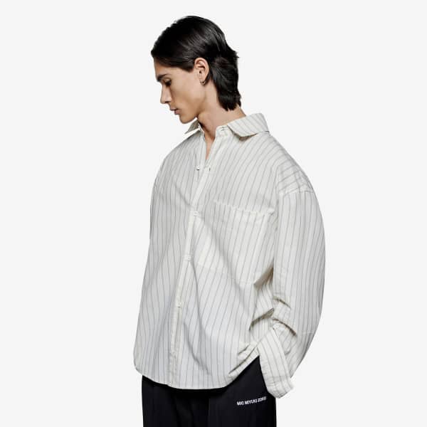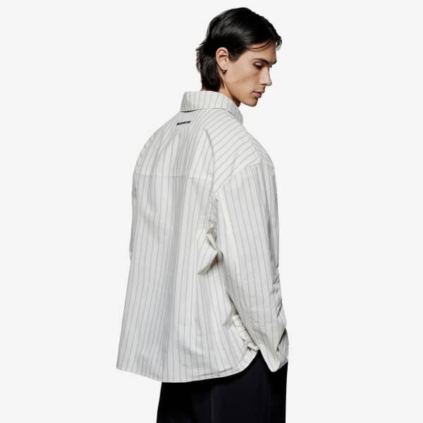 Рубашка прямого кроя MKI сочетает в себе классический крой и современные пропорции. Рубашка свободного кроя oversize с нежной текстурой микросаше и узором в полоску, придающим ей глубину. Изысканная, но в то же время непринужденная модель, которая переосмысливает повседневный стиль благодаря вышитому на спине фирменному логотипу MKI, завершающему образ.