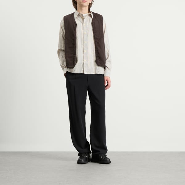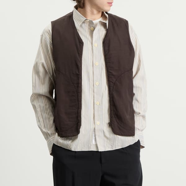 Созданный для путешествий на природе и в городе, Ranra переосмысливает функциональную модель, каждый элемент одежды. Жилет Mill из легкой хлопковой смеси идеально подходит для многослойного ношения. Дополненный тонкими утилитарными деталями, он представляет собой сдержанный образец технического кроя, созданный для движения, но при этом подходящий для любого места.