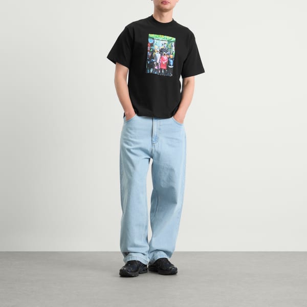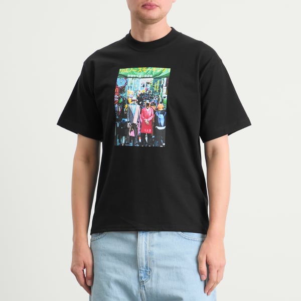 Эта футболка Pleasures, которая поможет вам путешествовать по всему миру, создана в сотрудничестве с Daft Punk. На груди - культовое фото 2000 года, где электронный дуэт стоит в оживленном модном районе Харадзюку.