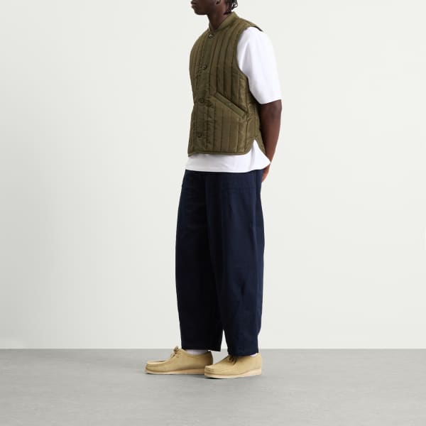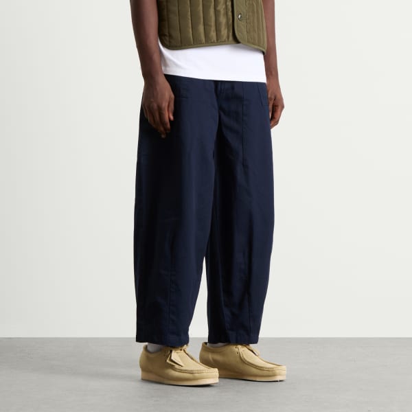 FrizmWORKS, корейский бренд, известный своим искусным мастерством и уникальным дизайном, представляет брюки-баллоны из твила. Эти брюки из высококачественной саржи, сочетающие в себе стиль милитари и современный комфорт, отличаются свободным силуэтом, напоминающим «баллон». FrizmWORKS уделяет особое внимание деталям и качеству в каждом стежке.