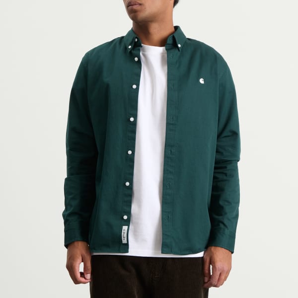 Carhartt WIP создает модели, воплощающие сдержанный подход к традиционной рабочей одежде, и эта рубашка Madison - яркий пример. Она сшита из чистого хлопкового твила и создает сдержанный образ, дополненный воротником на пуговицах и культовым мотивом в виде буквы «С».