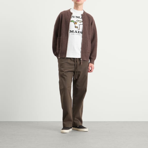 Пропитанный ностальгией, бренд Human Made создает уличную одежду в стиле старой школы. Ее отличительными чертами являются три фирменных знака: название японского бренда и игривый принт с уткой STRMCWBY спереди, дополненный тканым ярлычком с логотипом на рукаве.