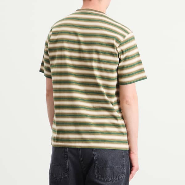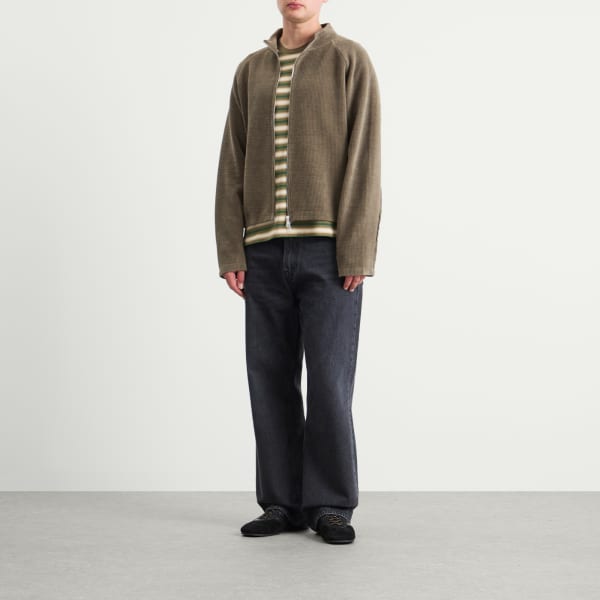Футболка Auralee, производимая в сотрудничестве с одними из самых инновационных фабрик мира, не стала исключением. Трикотажная текстура и контрастная отделка, а также градиентный полосатый рисунок вдохновлены морской тематикой.