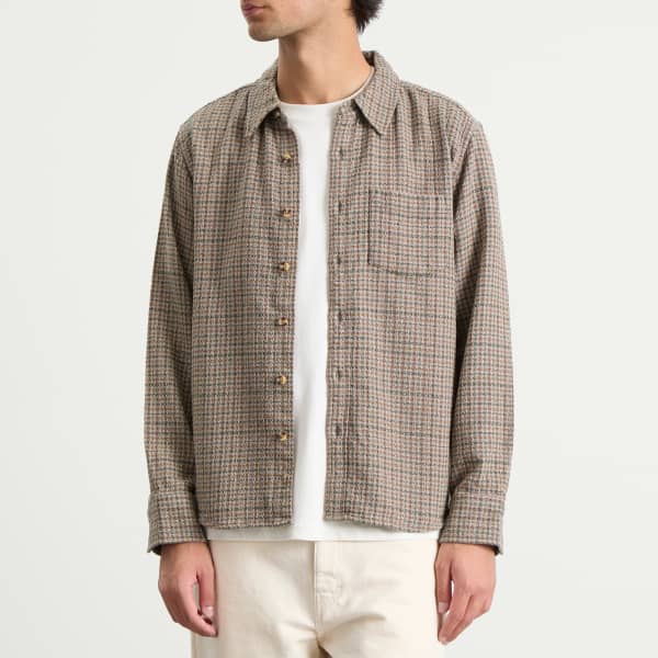 Рубашка Moonrock от Corridor сшита из чистого хлопка с фактурным клетчатым переплетением. Благодаря двойным нагрудным карманам и свободному крою, она подойдет как для повседневной, так и для элегантной одежды. Серо-коричневый цвет делает образ сдержанным, а ткань добавляет глубины. Универсальная базовая вещь, которая легко и просто смотрится на каждый день.