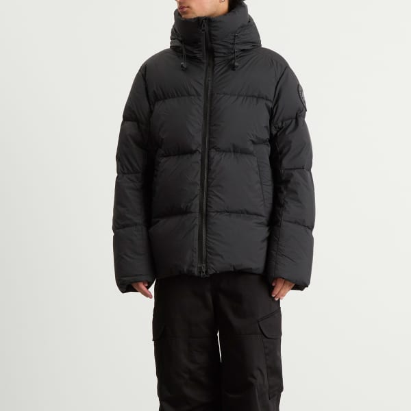 Куртка-пуховик Canada Goose Crofton Matte изготовлена из переработанной ткани Feather-Light Ripstop, обеспечивающей водоотталкивающие свойства и компактно складывающейся во внутренний карман для удобства транспортировки. Куртка разработана для низких температур, имеет регулируемый капюшон с пуховым наполнителем и вставки под мышками для большей подвижности. Светоотражающие двойные полосы повышают видимость, а съемные лямки и матовая отделка обеспечивают функциональность без ущерба для стиля.