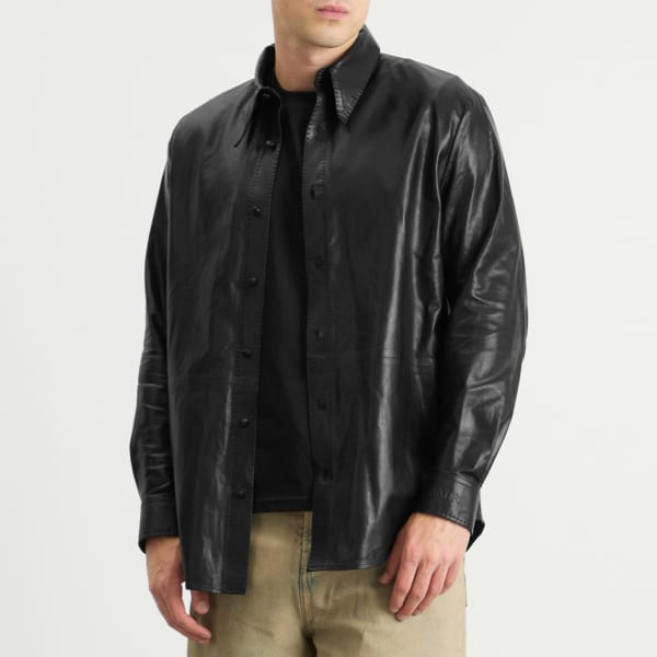 Легкая кожаная рубашка AMIRI - прекрасный пример дизайнерской философии бренда, сочетающей в себе элегантную изысканность и дерзкий стиль. Изготовленная из высококачественной кожи, она имеет приталенный силуэт, застежку на пуговицы, изогнутый подол и изящную отделку AMIRI на манжетах. Она сочетает в себе изысканную роскошь и рок-стиль, делая образ универсальным и повседневным, и вечерним.