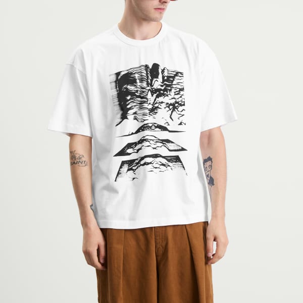 Эта свободная футболка YMC из органического хлопкового трикотажа средней плотности украшена эффектным цифровым принтом «Горы» Дэниела Фримена на груди. Горловина с окантовкой в рубчик и боковые швы обеспечивают комфорт и структуру. Эта практичная ткань сочетает в себе природные мотивы и современную уличную моду.