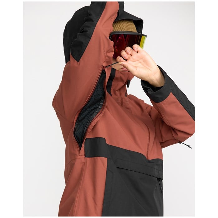 Бренд: Volcom Цвет: henna Куртка-пуловер Volcom Harlan - ваш идеальный выбор для велопоходов и непринужденного горного стиля. Свободный крой, дышащая подкладка и полностью проклеенные швы обеспечивают сухость и комфорт. Благодаря скрытому капюшону с застежкой-молнией, карманам для рук и двусторонней боковой молнии, куртка легко перемещается, легко складывается и охлаждает, куда бы вы ни отправились. Наденьте ее, застегните, и пусть склоны или домик станут вашей игровой площадкой.