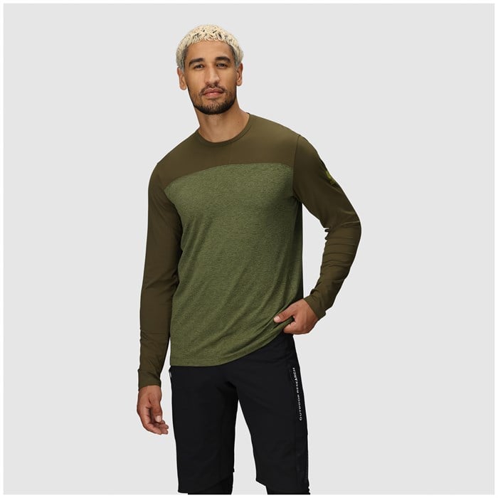 Бренд: Outdoor Research Цвет: dark olive/willow heather Джерси Outdoor Research Freewheel с длинным рукавом сочетает в себе легкую ткань с обработкой ActiveTemp, которая помогает регулировать температуру тела при езде по крутым серпантинам. Бесшовные плечи не натирают под рюкзаком, укороченный крой не сползает, когда вы наклоняетесь над рулем, а микрофибровая салфетка на подоле позволяет протирать очки от брызг, не прерывая сон.