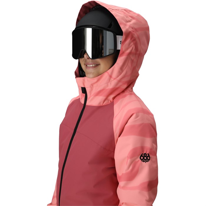 Бренд: 686 Цвет: rosewood colorblock Утепленный комбинезон для девочек 686 Shine Insulated - настоящий супергерой для снежных дней: теплый, водонепроницаемый и цельный, так что снег не забьет штаны. Благодаря ткани infiDRY 10K, теплому утеплителю и размерной сетке Youth Evolution он выдержит любые падения, катания на санках и снежные бури. Одна молния - и готово: вам будет легко, а детям - уютно!