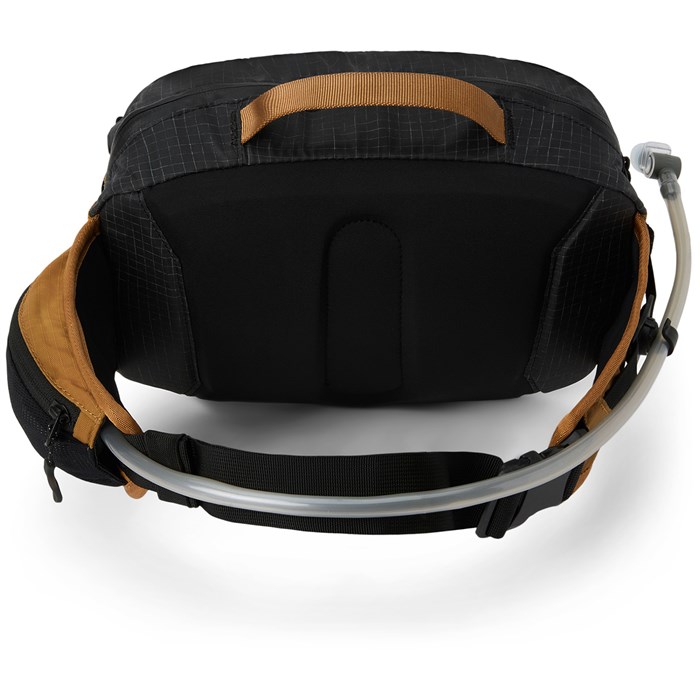 Бренд: Dakine Цвет: black/rubber Поясная сумка Dakine Seeker объемом 6 л обеспечивает защиту от непогоды и имеет обтекаемую конструкцию, которая надежно защитит все необходимые вещи для похода, не утяжеляя вас. Эта компактная сумка оснащена удобными внешними ремнями для фиксации рюкзака в ненастную погоду, а также удобными набедренными карманами для перекуса и инструментов, необходимых в дороге.