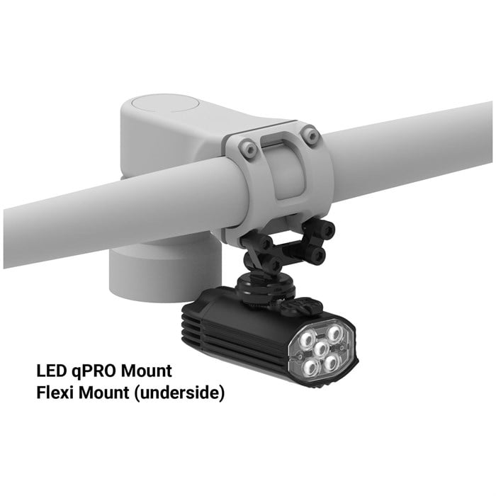 Крепление: Совместимость с креплениями LED qPro - маленькое и большое крепление Mega Mount, крепление Flexi Stem, переднее крепление Garmin/Wahoo GPS с GoPro.