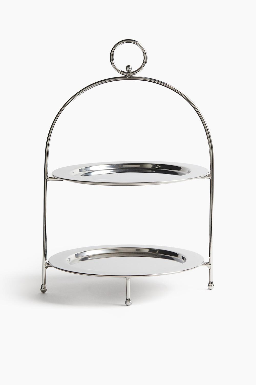 Элегантная двухъярусная подставка для торта с ручкой сверху. Эта красивая и практичная вещь добавит роскоши вашему дому.