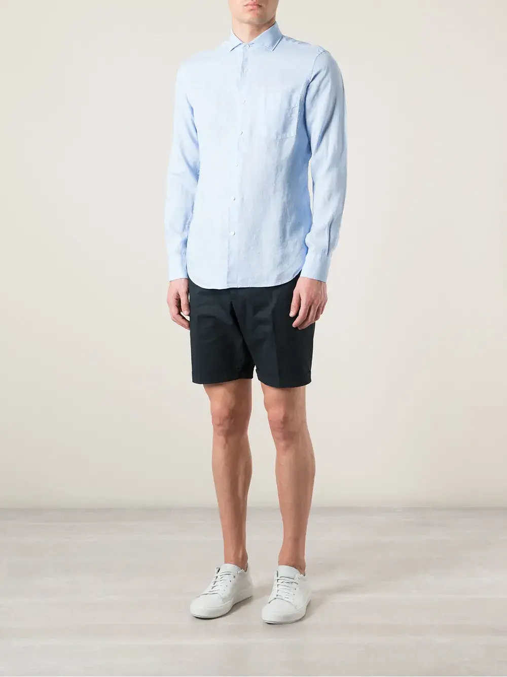 Голубая льняная рубашка с косым воротником от Aspesi.