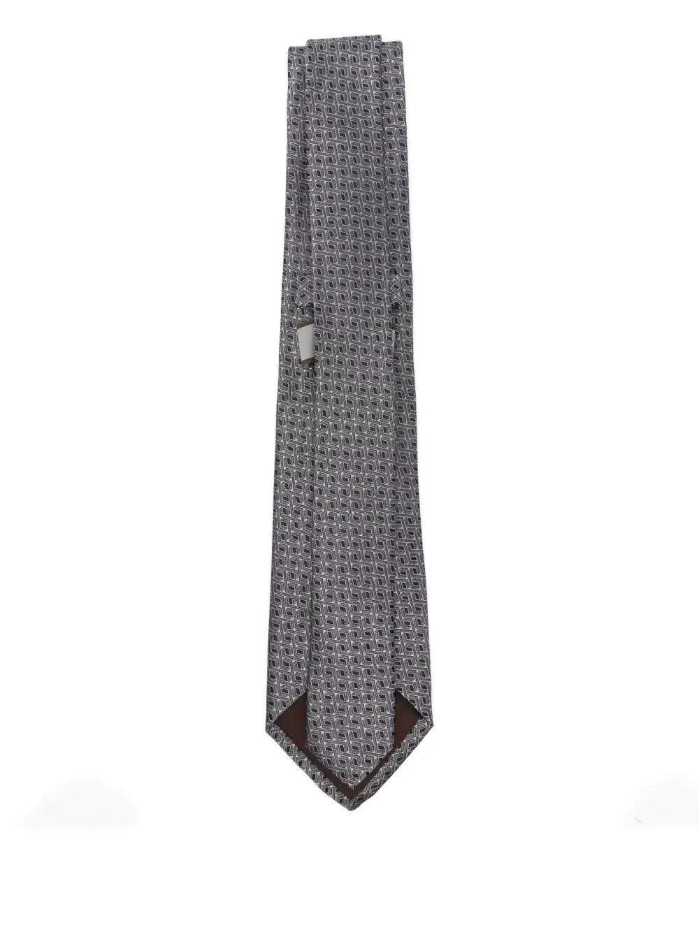Серый галстук с геометрическим узором и заостренным концом