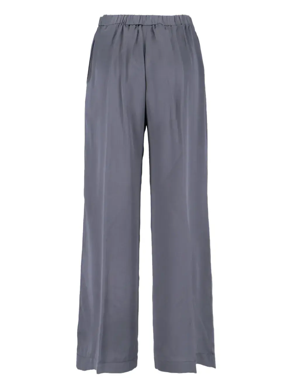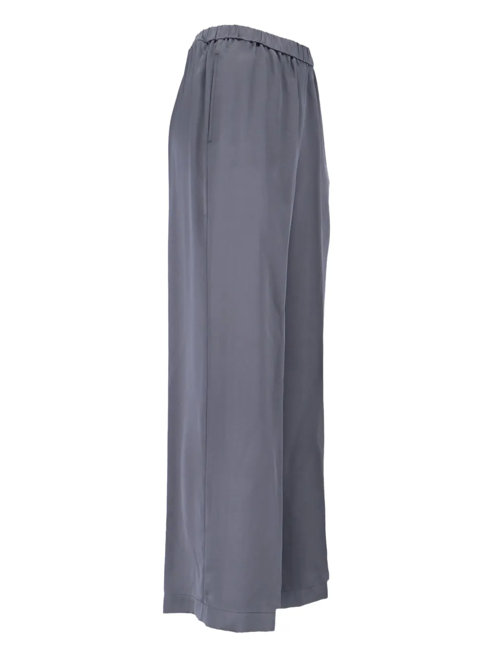 Серые широкие брюки из шелка с эластичным поясом и боковыми карманами