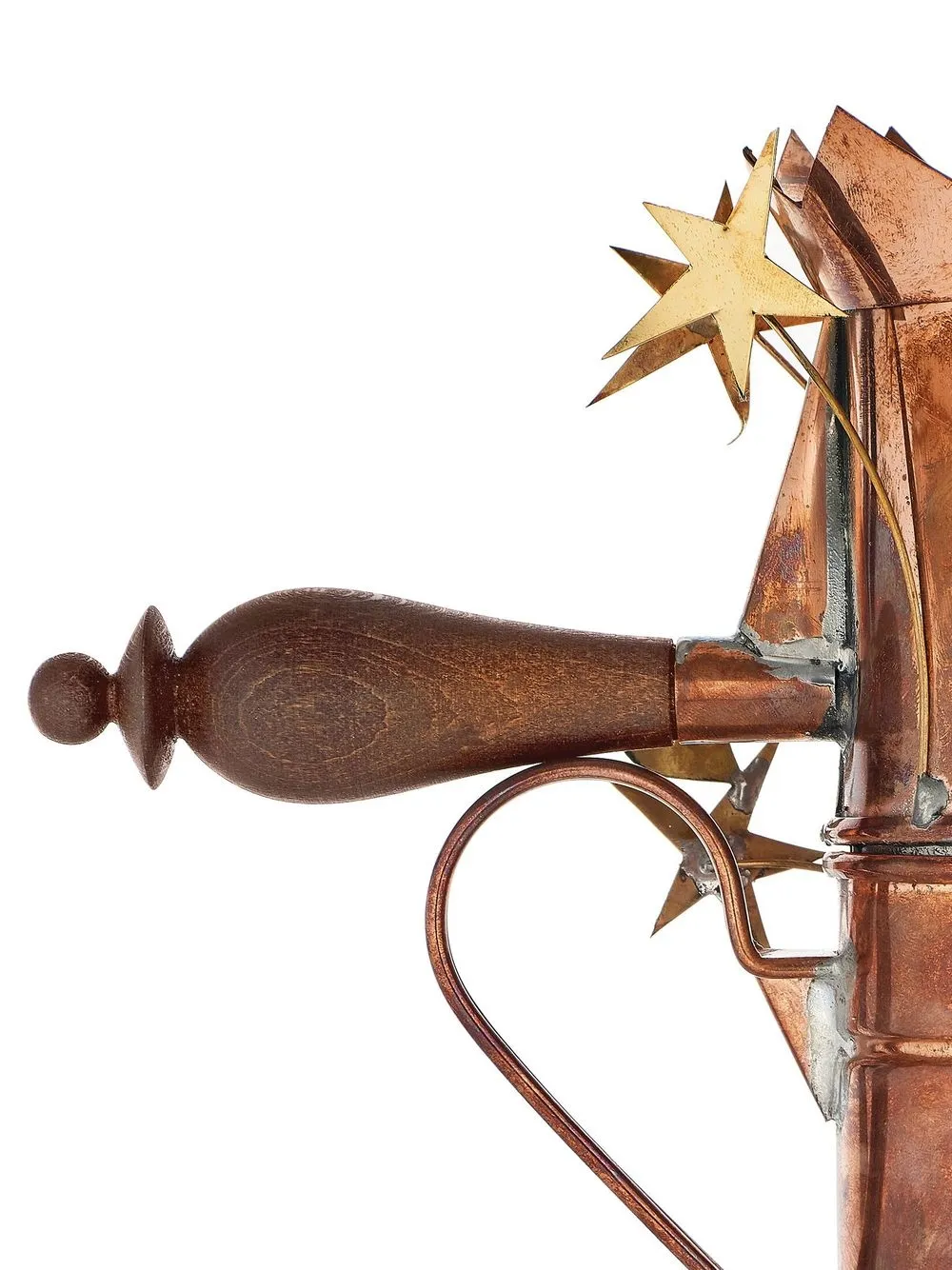 Медный, матовое покрытие, круглая ручка, объемная аппликация и заклепки в форме звезд.