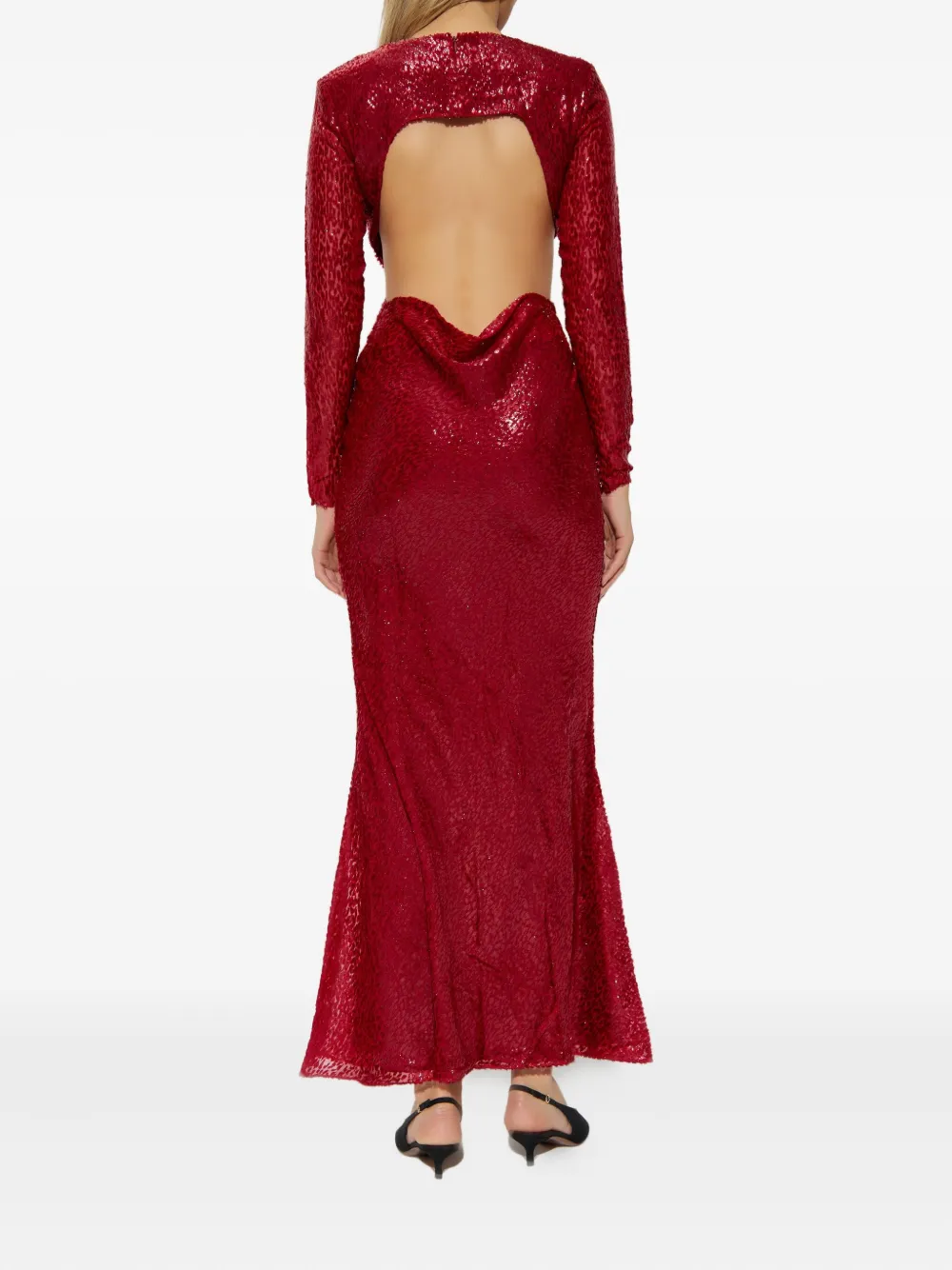 Платье с вырезами и длинными рукавами Self-Portrait, красный 56 335₽